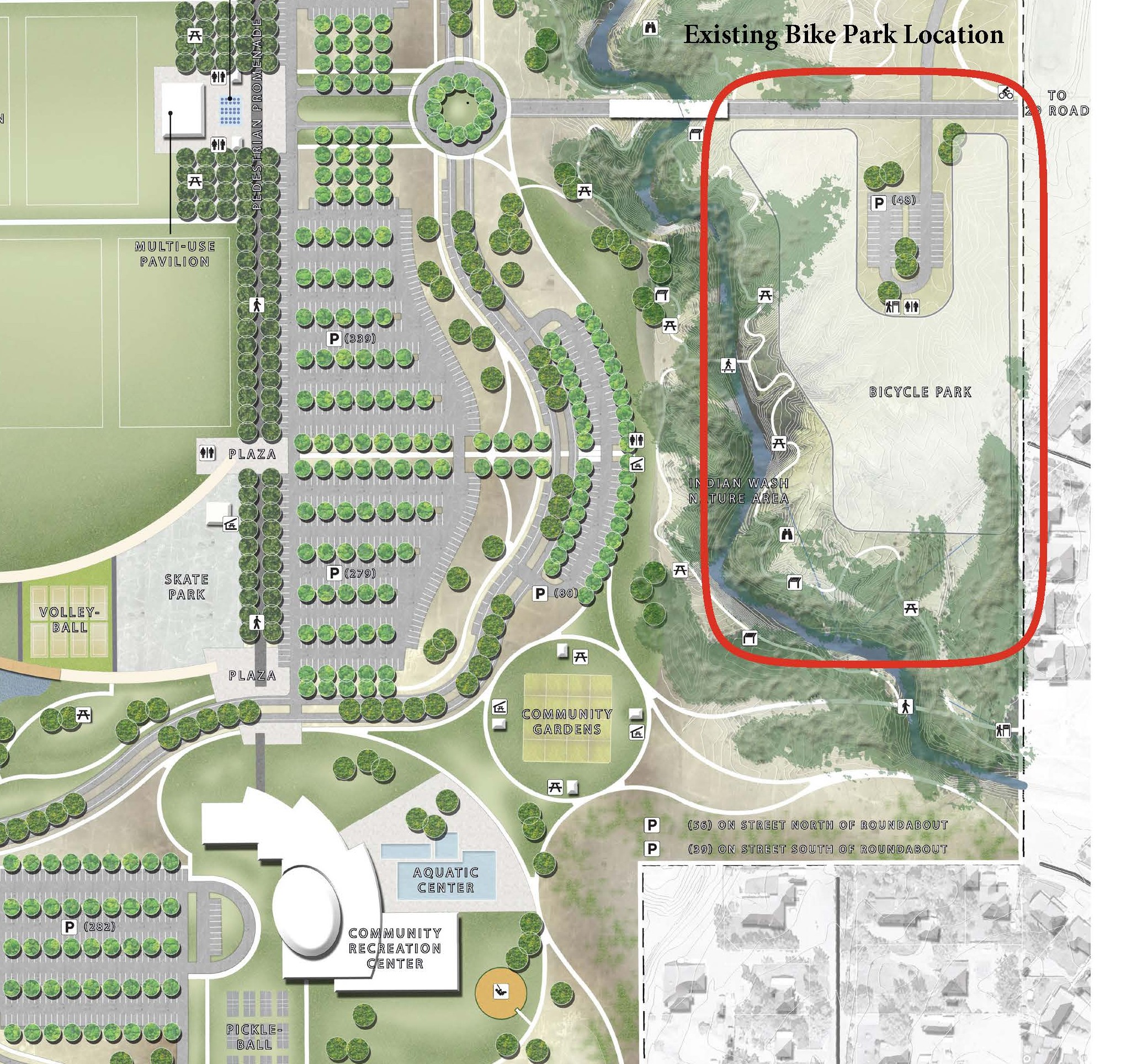 Matchett Park is a large city-owned property located on the north side of Grand Junction that has been identified for a variety of recreational opportunities. The site is currently being developed to include the Community Recreation Center and other outdoor amenities. While the recreation center project is planned for the property, the bike park area discussed here is separate from that facility and located on the east side of the park.